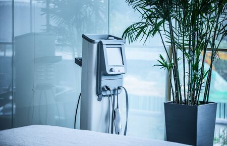 Radiofrequency lipolaser ultrasound machine and space harvester in a beauty salon on a white background, body care