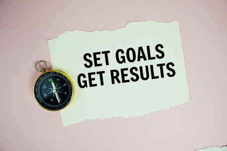 Set Goals Get Results text motivational and inspiration quote with compass on pink background