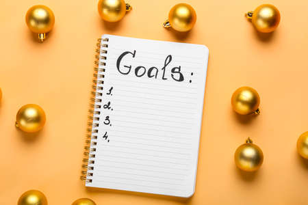 notebook with the inscription of goals on the table, for recording the planned goals for 2021