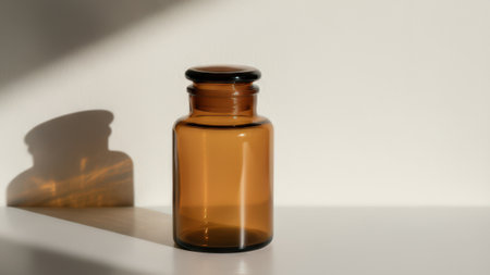 Amber glass jar casting shadow on surface.