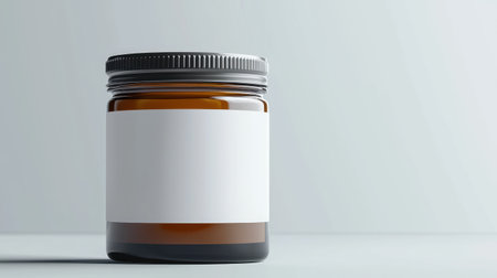 An amber glass jar sits upright on a smooth surface, illuminated by soft lighting that emphasizes its sleek silhouette. The blank label invites personalization for various uses, from skincare to food storage, enhancing its versatility.