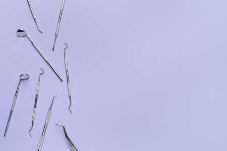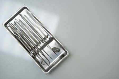 Dental instruments, dental instruments in a modern dental clinic of dentists. Copy space.