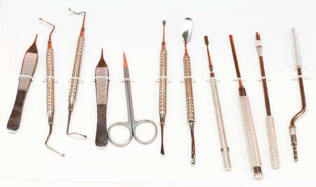 Set of dentist tools on a on a white background