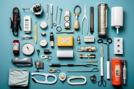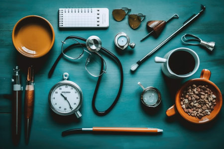 doctor tools and equipment flat lay AI Generated