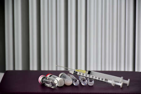 Ampoule and needles from a medical syringe