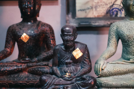 thai statues in the temple close-up. Buddha murtis in details in details