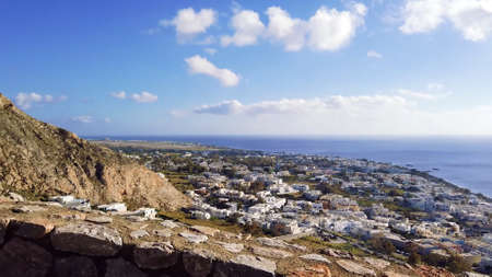 view of Kamari city in Santorini from the ancient thera road. High quality photo