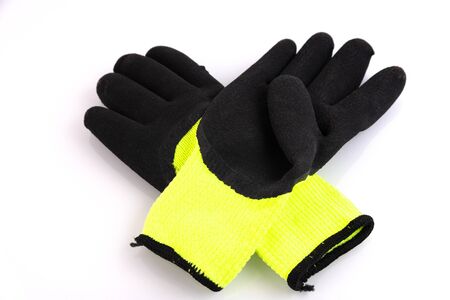 Protective gloves yellow and black on a white background
