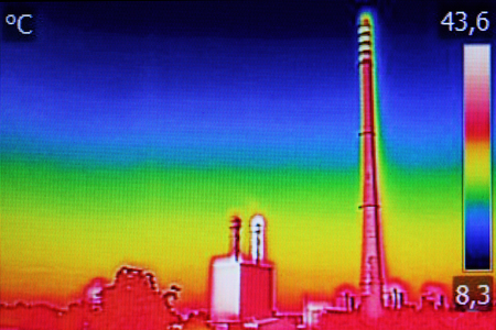 Infrared thermography image showing the heat emission at the Chimney of energy station