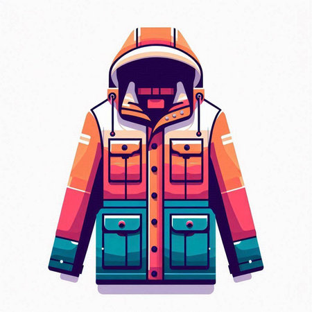 Winter sports jacket on a white background. Colorful vector illustration.