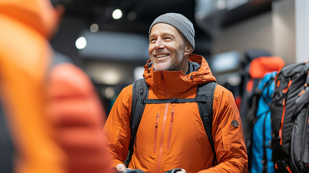 Happy Customer Receiving Expert Advice from Salesman on Outdoor Clothing in a Retail Store