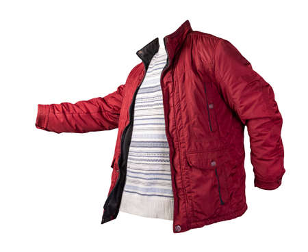 red jacket and burgundy sweater isolated on white background.bologna jacket and wool sweater