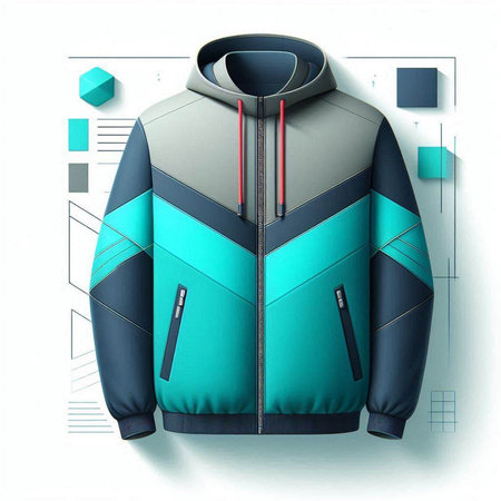 Sport jacket with hood isolated on white background. 3D illustration.