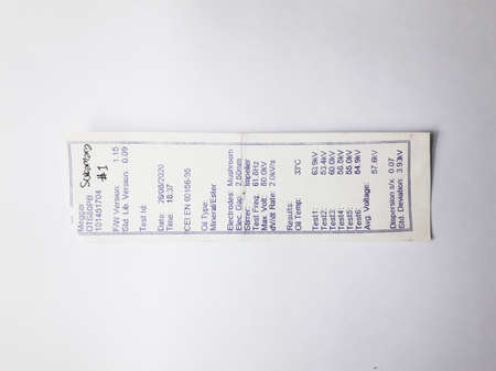 Klang,Malaysia : May 6, 2021- paper sales receipt isolated on a blue background.