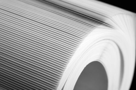 Heap of ppers on a printer, extremely shallow DOF, in black and white