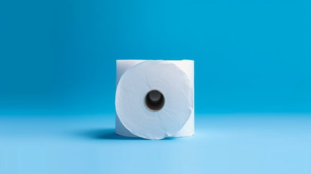 Toilet paper roll on blue background. Minimalistic concept.generative ai