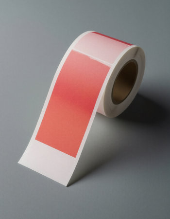 Roll of cassette paper tape with shadow on white paper, copy space. Roll of cash register tape, slip receipt paper roll
