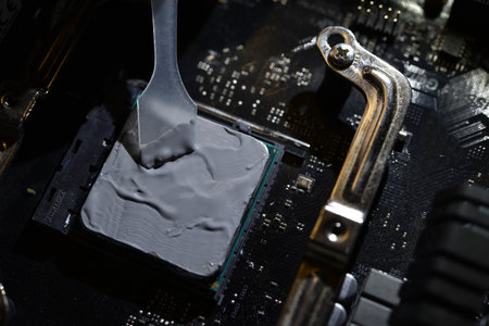 Close-up shot of the inside of a computer's motherboard.