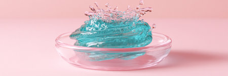 Aqua Splash in Glass Bowl Pink Background Teal Liquid Beauty Product gel drop wave water clear fresh