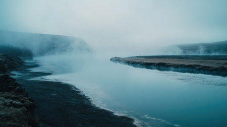 A beautiful landscape with steam rising from a geothermal area, showcasing the natural wonder and ethereal mist in a volcanic setting.