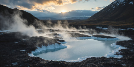 AI Generated. Scenic Landscape of Geothermal Geysers and Hot Springs at Dawn