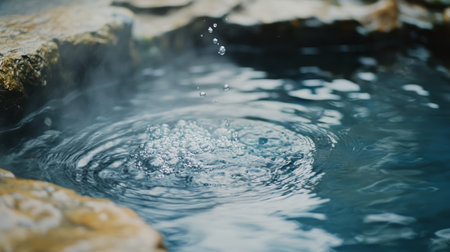 A close up view of hot spring water showcasing bubbles and ripples in stunning detail