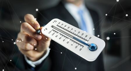 Businessman checking the temperature drop with a thermometer 3D rendering