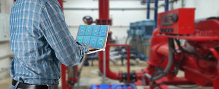 Technician use infrared thermal imaging camera to check temperature at fuse-box