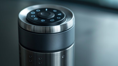 A closeup of a person adjusting settings on a smart hydration bottle which tracks water intake with illuminated prompts promoting optimal hydration for metabolic efficiency..