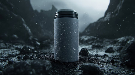 Cinematic wide shot (16:9) of the residue of an intense training session. A stainless steel thermos,