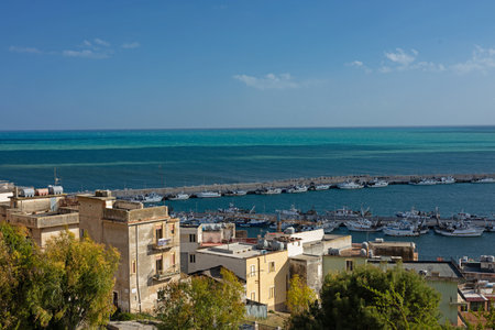 TRAPANI, ITALY - FEBRUARY 25, 2014: day view of harbor and waterfront in Trapani, Italy. The city is an important fishing port and the main gateway to the nearby Egadi Islands