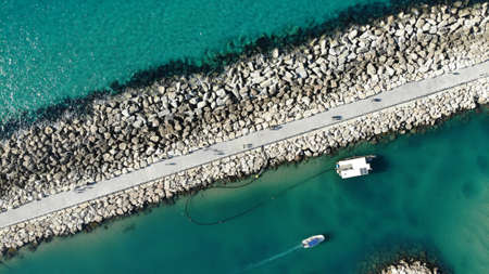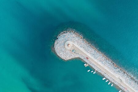 Aerial view of the rocks on the sea. Overview of the seabed seen from above, transparent water