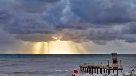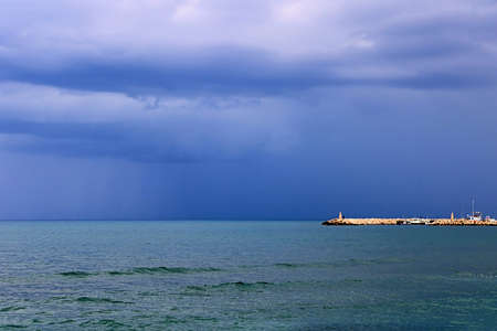 View of pier and the Mediterranean Sea after the rain in Larnaca, Cyprus