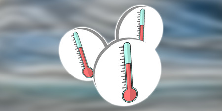 Three glass medical thermometers on a blue background, background