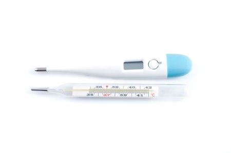 Glass mercury and digital thermometer isolated on a white background