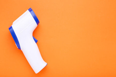 Medical infrared thermometer on orange background