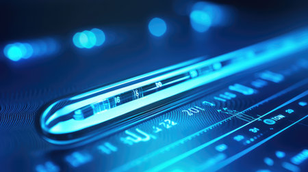 Digital electronic thermometer in blue light. 3d render illustration.