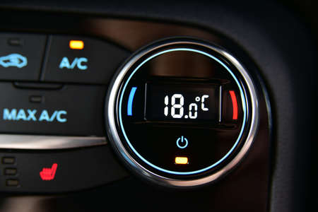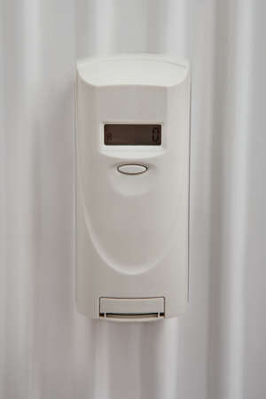 white wall air conditioning control panel with screen and control buttons, close up empty.