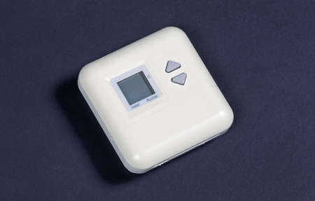 Adjusting room temperature with electronic thermostat at home. Empty screen