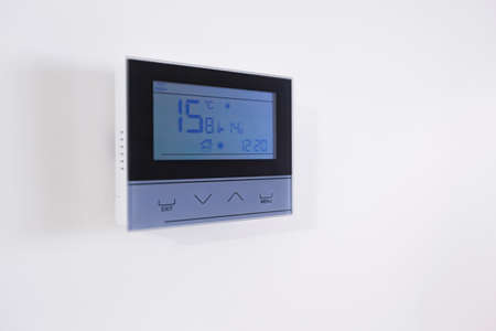 Control panel, air conditioning and heating system of the house, on a white wall, smart home
