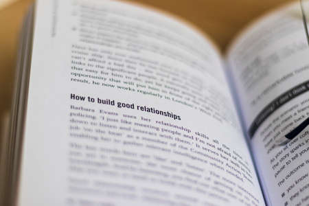 Macro photo of paper book in blue hardcover with white pages. Extremely close up shot of a book on a bookshelf. Concept of publishing literature, reading, culture. Back to school, college concept.