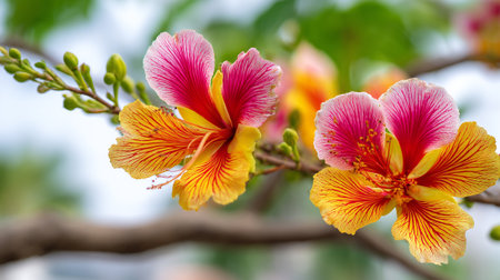 Beautiful exotic flower with buds, displaying vibrant colors and textures.