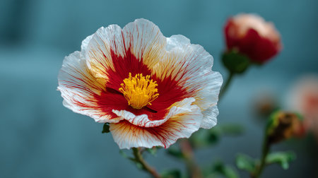 This stunning close-up image showcases a vibrant flower with intricate details, revealing its delicate petals and striking colors against a soft background.