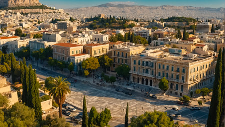 Aerial athens cityscape view from acropolis hill, athens, greece