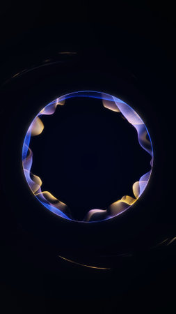 Abstract glowing circular structure with dynamic energy waves on dark background. Suitable sphere for technology and sci-fi projects.