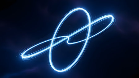 A mesmerizing image of intertwined glowing blue neon rings set against a dark, starry background, creating a sense of depth and mystery.