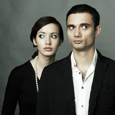 Love to be with him all the time. Couple in love. Handsome man and sexy woman with fashionable look. Couple of fashion models. They both love fashion