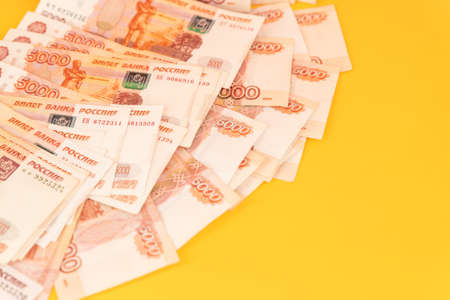 Russian money background. Russian roubles, russian rubles cash closeup. Rubles in cash. Finance and business background. 5000 rubles. Gas crisis concept.Selective focus