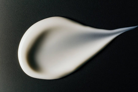 Smooth white cream texture on black background showcasing beauty and skincare concepts, ideal for healthy skincare, cosmetics, and beauty products