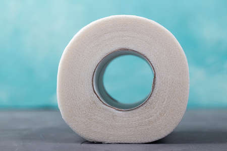 toilet paper rolls on a turquoise background, close-up
